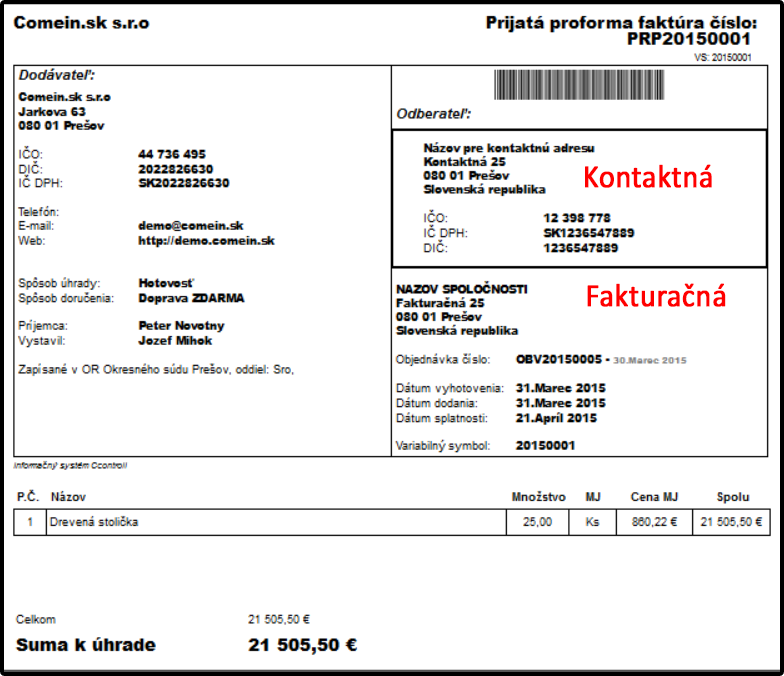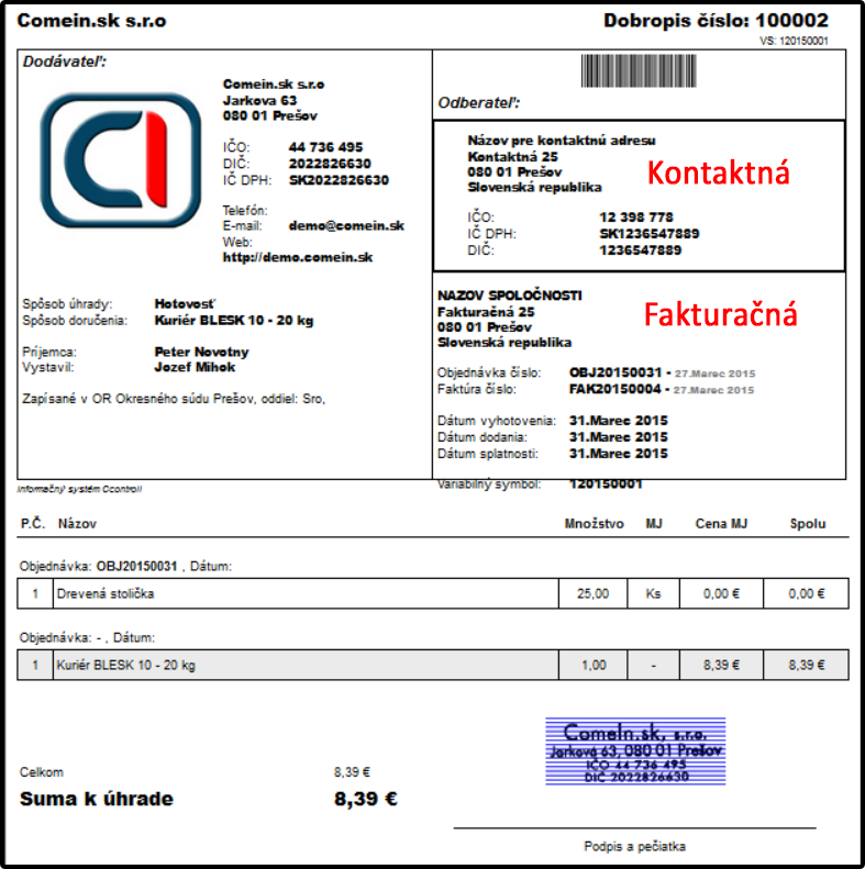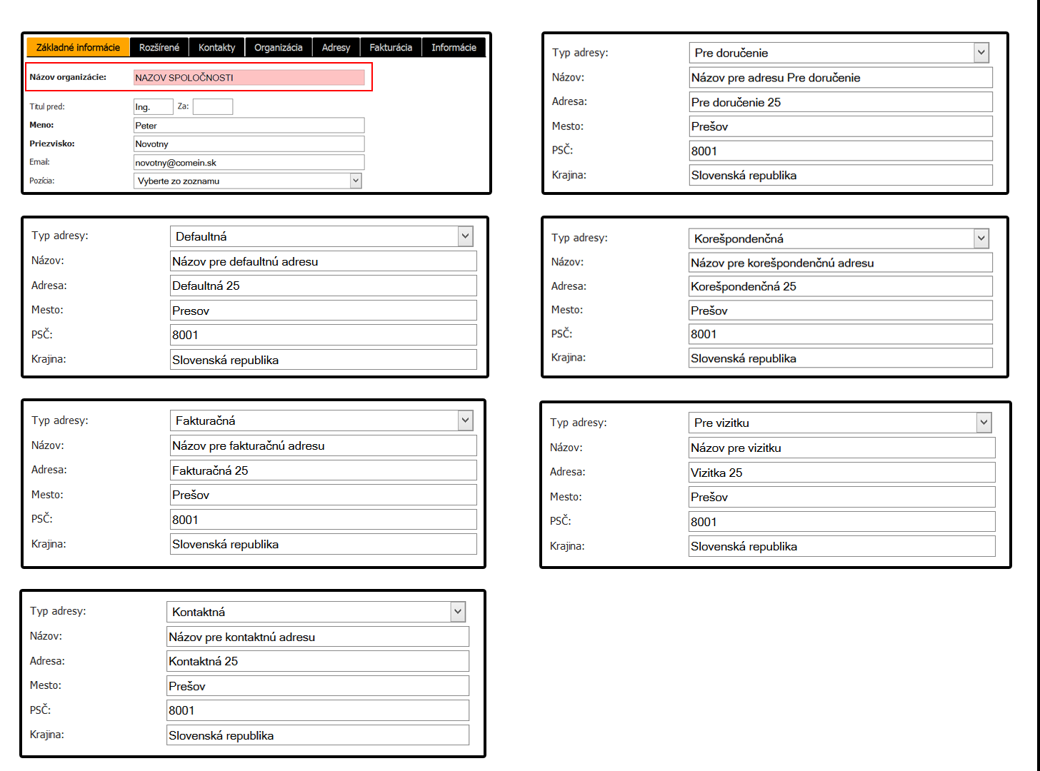 Užívateľovi, kontaktu alebo organizácii je možné prideliť viacero adries, ktoré sa líšia tým, kde sa v systéme zobrazujú. Napríklad firma môže mať inú fakturačnú adresu, ako je adresa, kde sa jej zasielajú písomnosti. Prípadne skladové priestory spoločnosti, v ktorých prijíma tovar, sa môžu taktiež nachádzať na inej adrese.