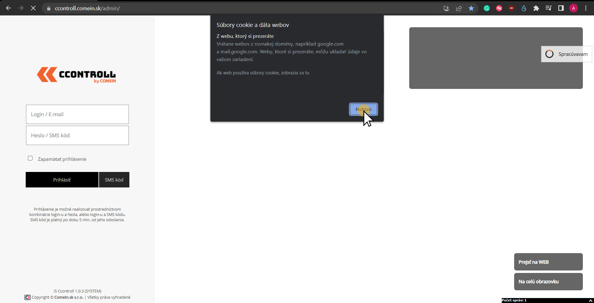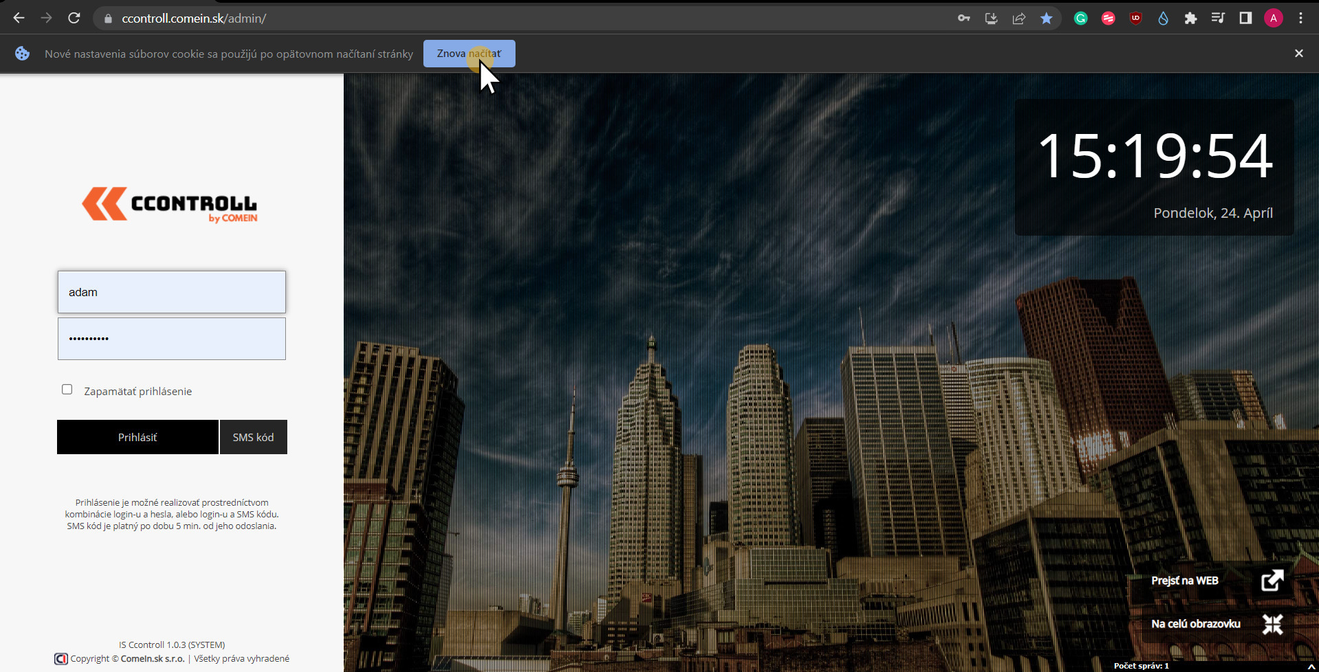 6. Znovu načítajte stránku a prihláste sa