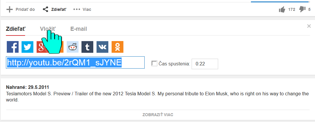 Prejdeme na lokalitu www.youtube.com a vyhľadáme video, ktoré chceme vložiť do článku.