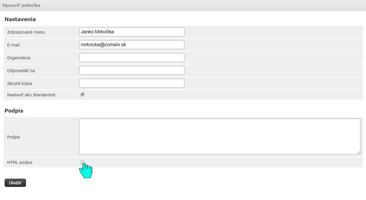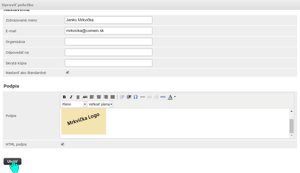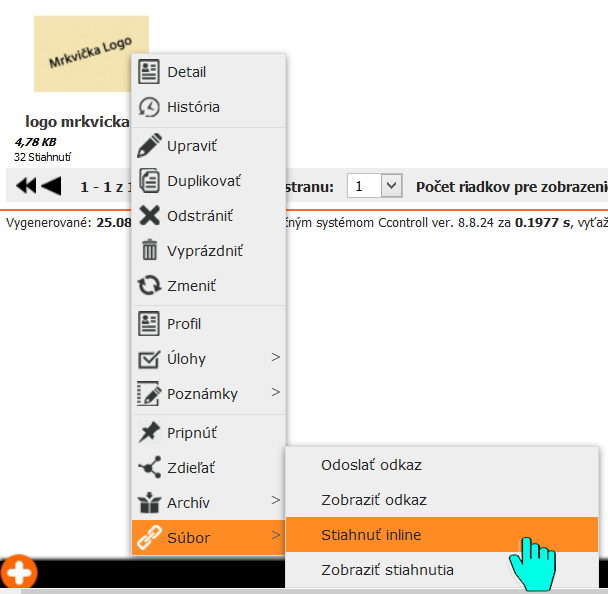 Systém Ccontroll umožňuje jednoduché a rýchle vygenerovanie HTML kódu pre obrázok, ktorý chceme použiť do podpisu v emaily ako logo. Je potrebné si obrázok nahrať do systému Ccontroll, do modulu SÚBORY. Kliknutím pravým tlačidlom na daný súbor obrázka vyvoláme kontextové menu.