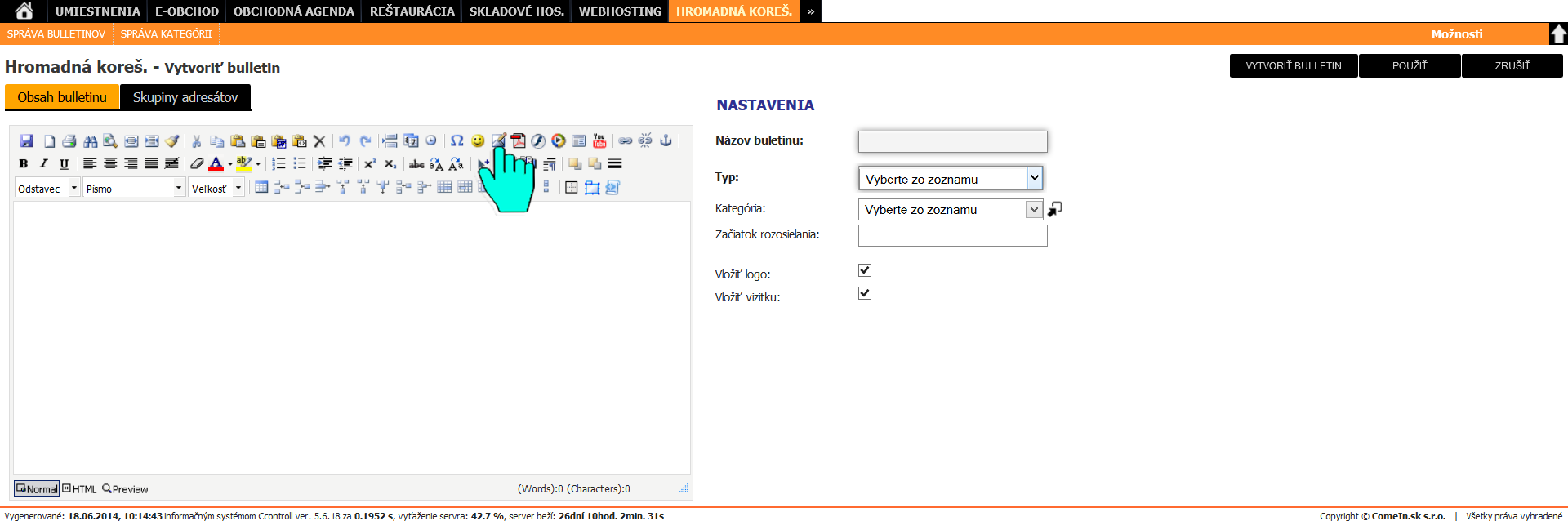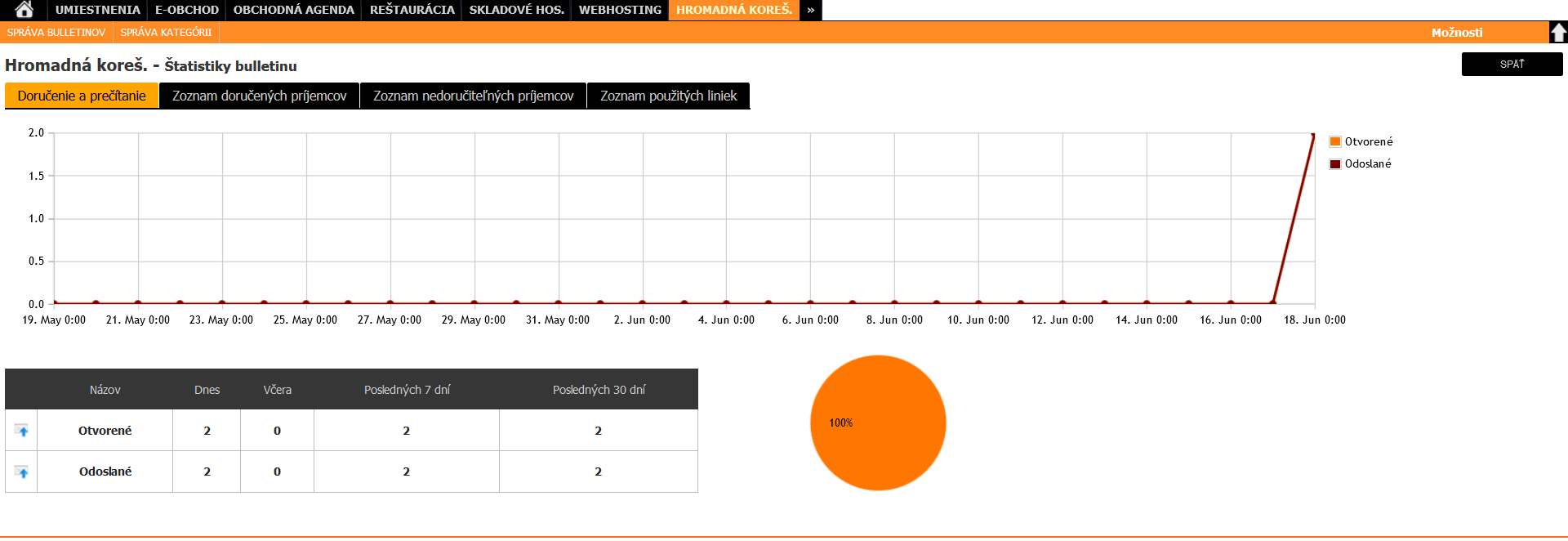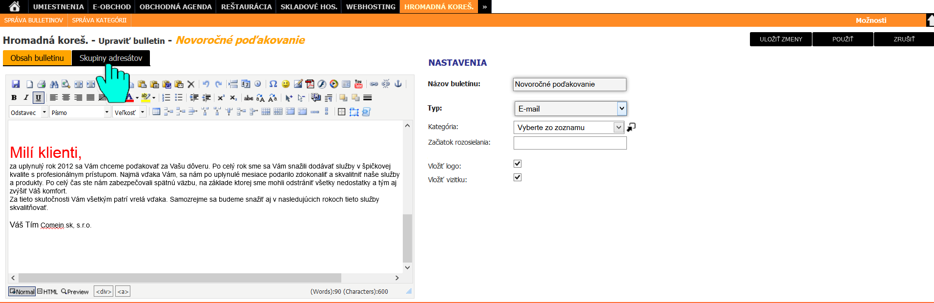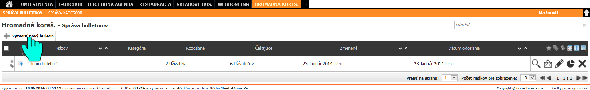 Informačný systém poskytuje funkciu hromadného rozposielania mailov a buletínov kontaktom uloženým v informačnom systéme. Dodatočnými nastaveniami je možné vytvoriť cielené, plánované a adresné rozosielanie reklamných alebo informačných emailov. Podrobné štatistiky informujú užívateľa napríklad o tom, koľko ľudí si email otvorilo. Koľkokrát sa kliklo na odkaz v emaily a pod.
