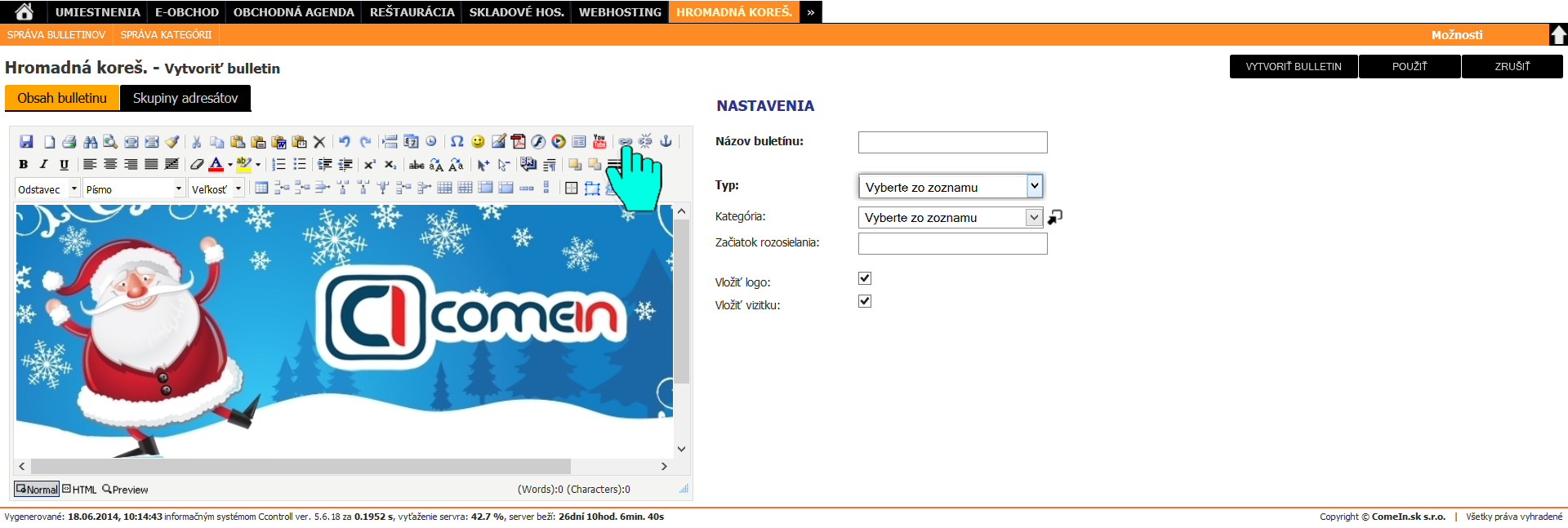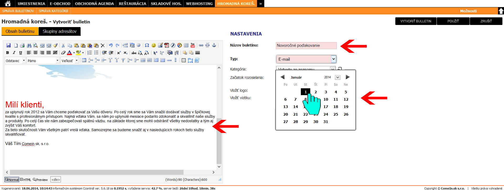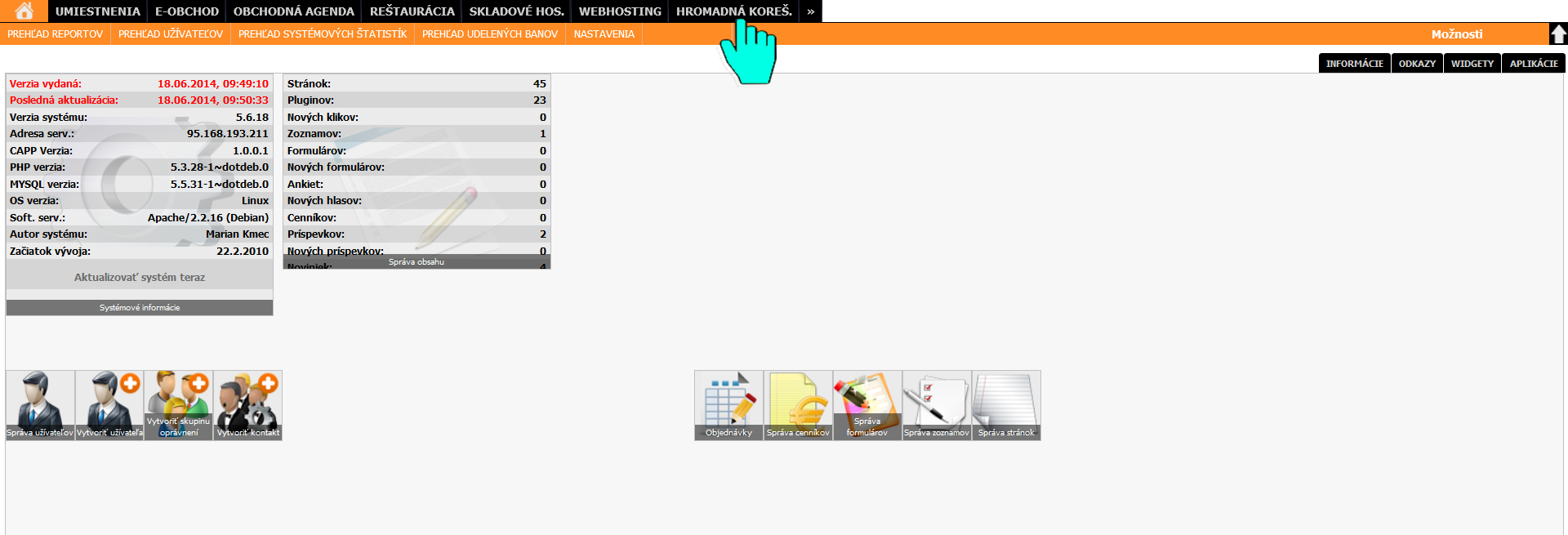 Informačný systém poskytuje funkciu hromadného rozposielania mailov a buletínov kontaktom uloženým v informačnom systéme. Dodatočnými nastaveniami je možné vytvoriť cielené, plánované a adresné rozosielanie reklamných alebo informačných emailov. Podrobné štatistiky informujú užívateľa napríklad o tom, koľko ľudí si email otvorilo. Koľkokrát sa kliklo na odkaz v emaily a pod.