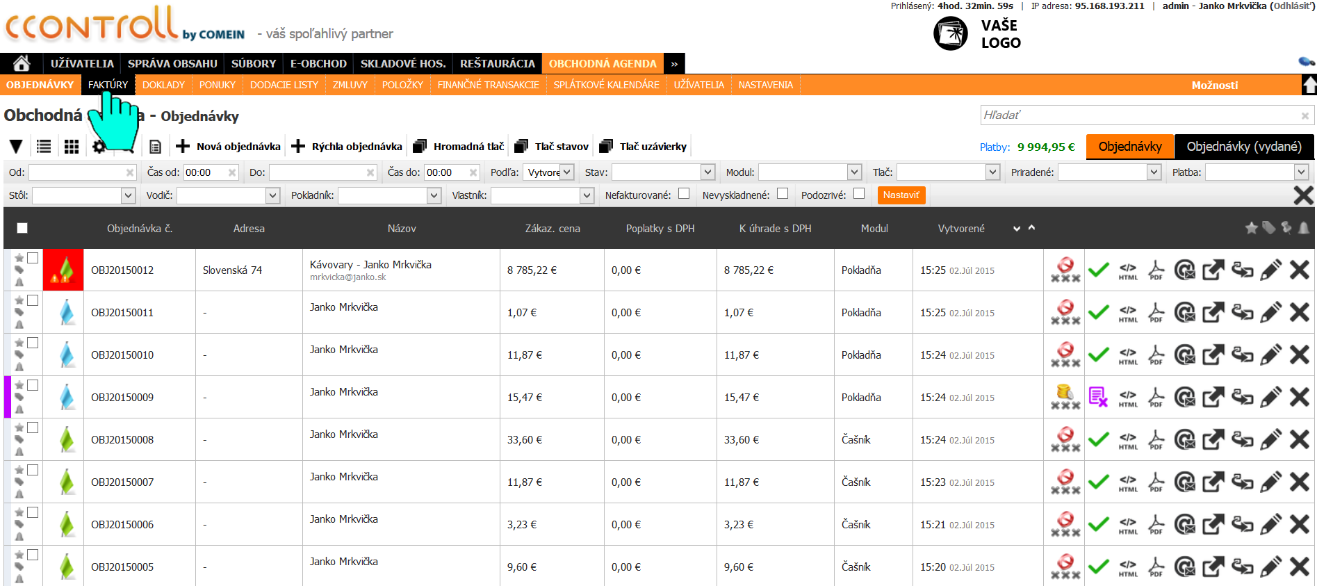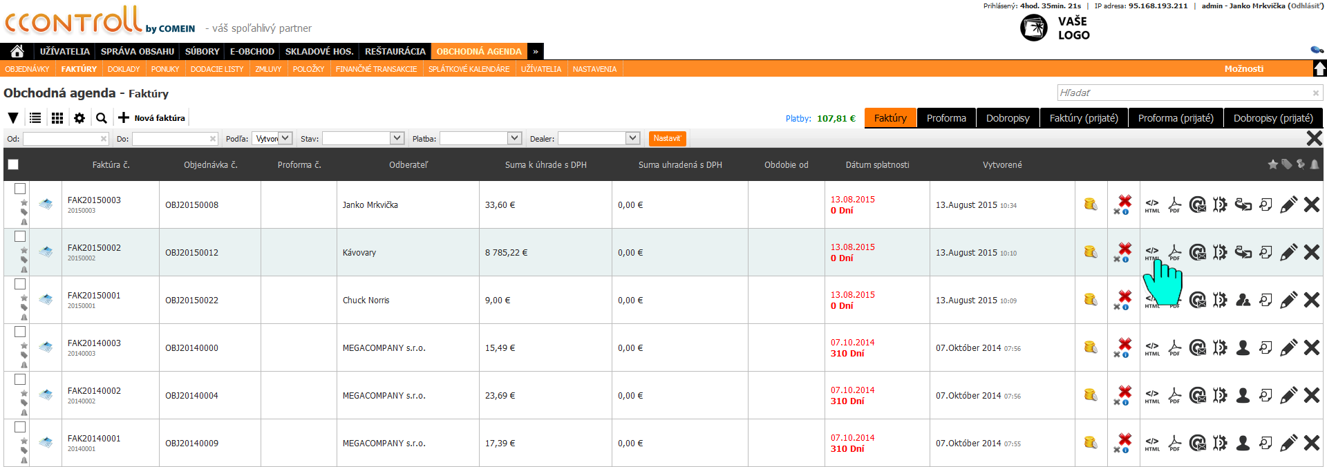 Klikneme na ikonu HTML napravo od faktúry, s ktorou chceme vytlačiť aj dodací list.