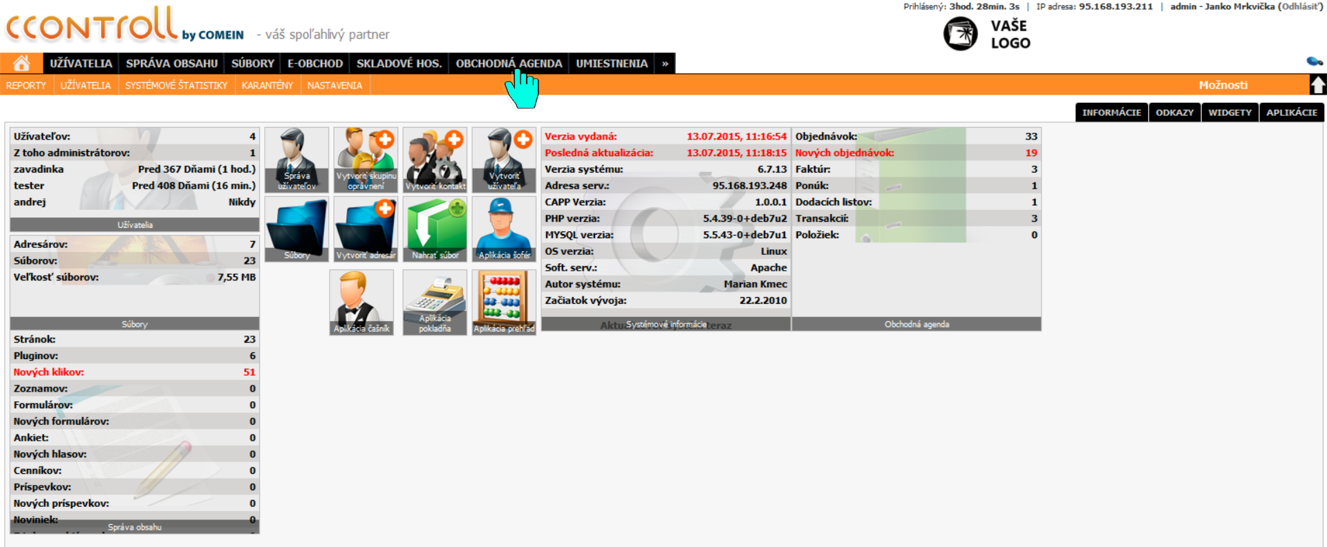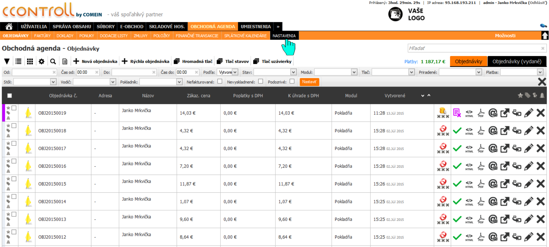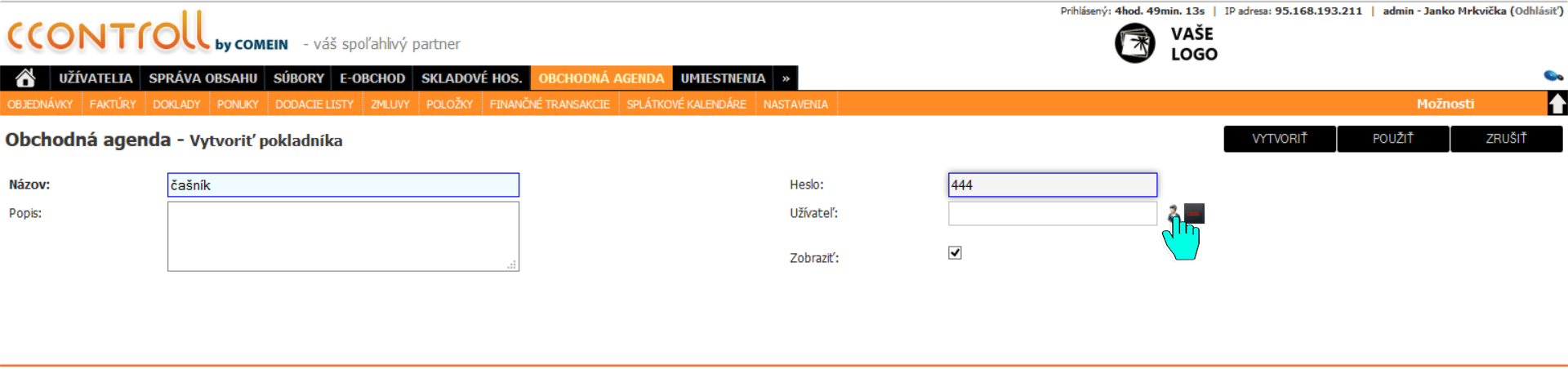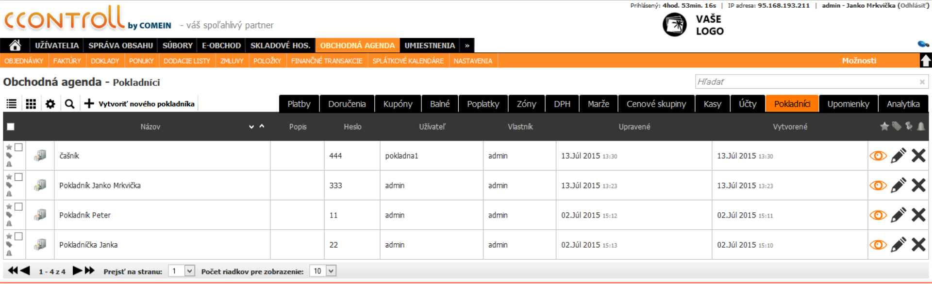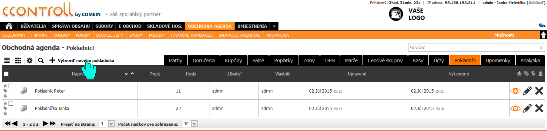 Ak užívateľ využíva aplikáciu Pokladňa, môže v rámci nej využívať viacero pokladníkov, ktorí obsluhujú jednu pokladňu. Je to z dôvodu, aby sa viedli presné uzávierky pre jednotlivých pokladníkov, účtujúcich na jednej registračnej pokladni. Pokladník nie je bežný užívateľ systému, ktorý má vlastne prihlasovacie meno a heslo, ale je viazaný na niektorého existujúceho užívateľa. Na jedného užívateľa môže, a väčšinou aj je, viazaných viacero pokladníkov.