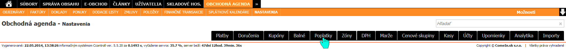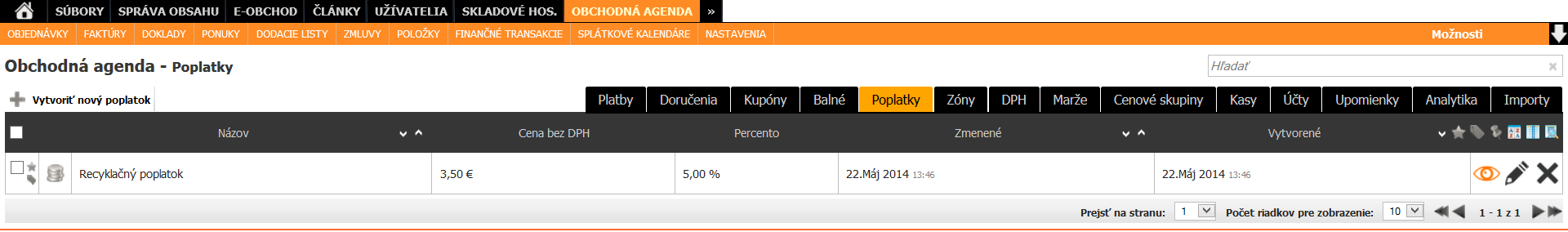 Zobrazí sa nám zoznam poplatkov vytvorených v systéme.