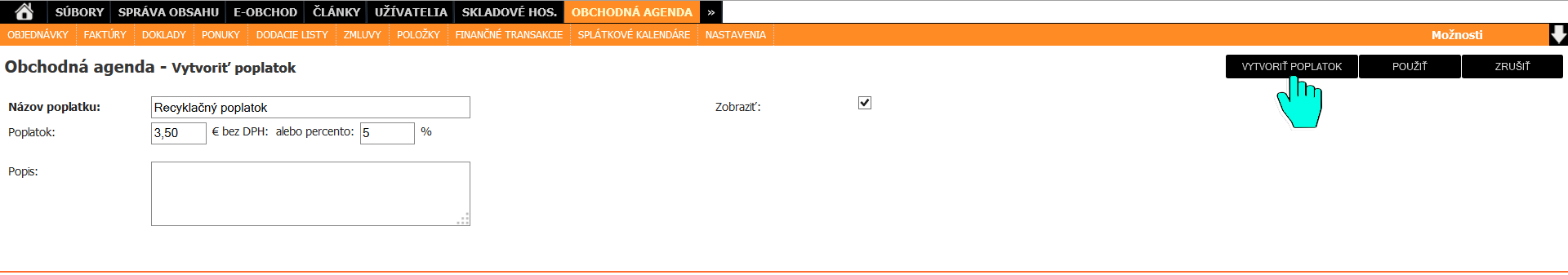 VYTVORIŤ POPLATOK
