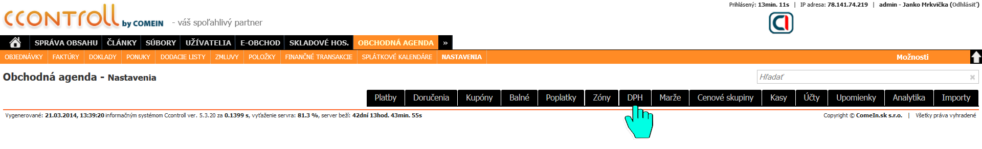 Je potrebné vyplniť názov sadzby a percento sadzby. Sadzbu vytvoríme kliknutím na