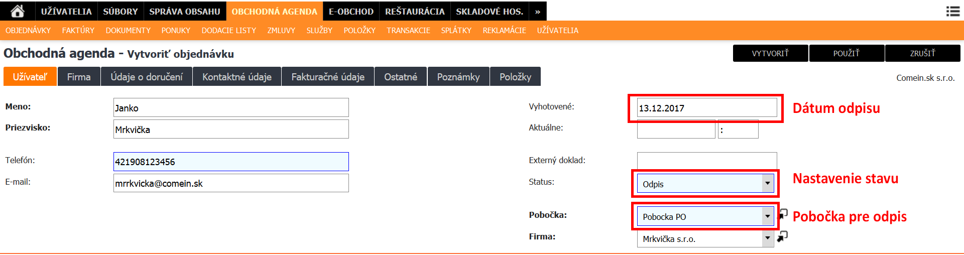 1. Nová objednávka v module Obchodná agenda