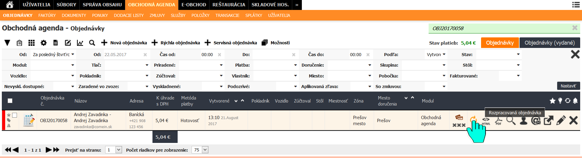 Systém umožňuje vytlačiť stornovaný daňový doklad priamo z administratívnej časti informačného systému. Takáto tlač je dostupná zo všetkých vytvorených objednávok v systéme, ktoré boli zaslané do fiskálneho zariadenia. Možnosť opätovného tlačenia dokladov je viazaná na fiskálne uzávierky, a preto po vytvorení uzávierky je možné, že systém nedokáže vytlačiť storno.