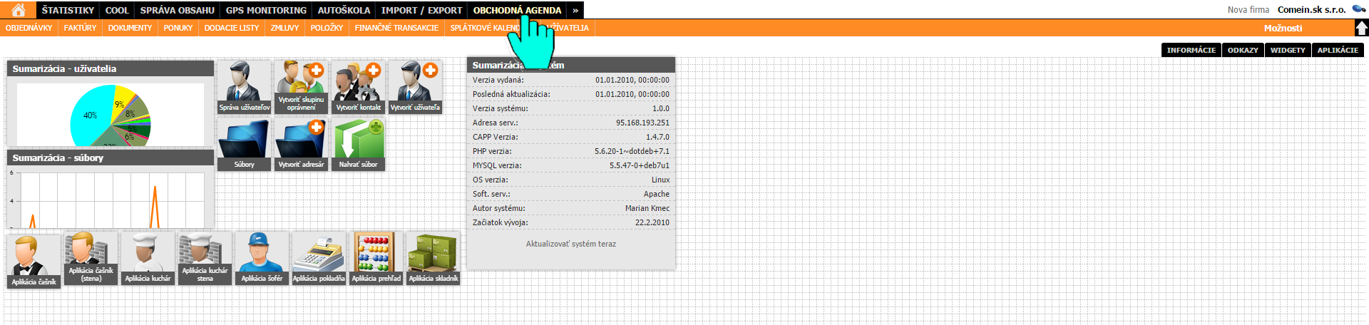 Klikneme si v systéme CControll, na modul OBCHODNÁ AGENDA. Otvorí sa nám automaticky podmodul Objednávky.
