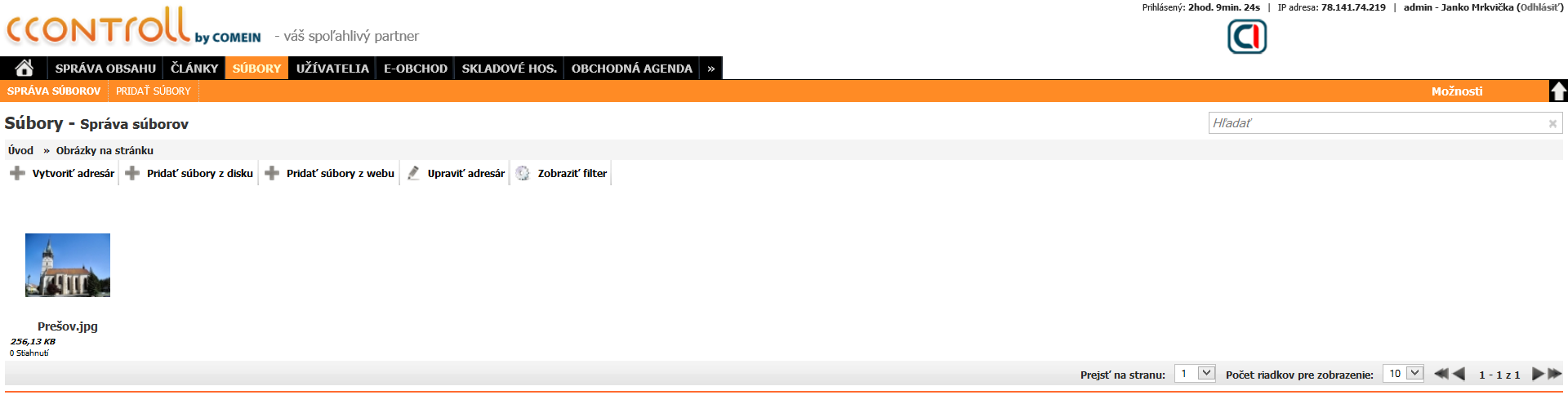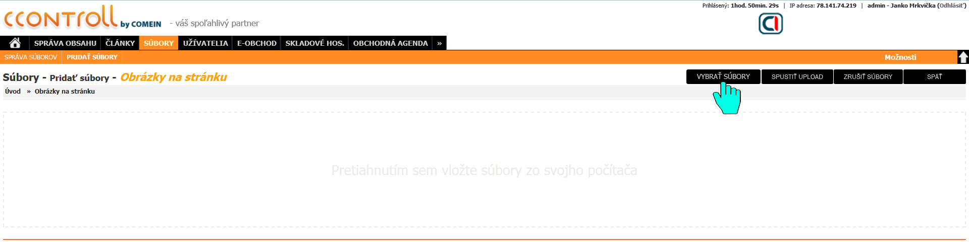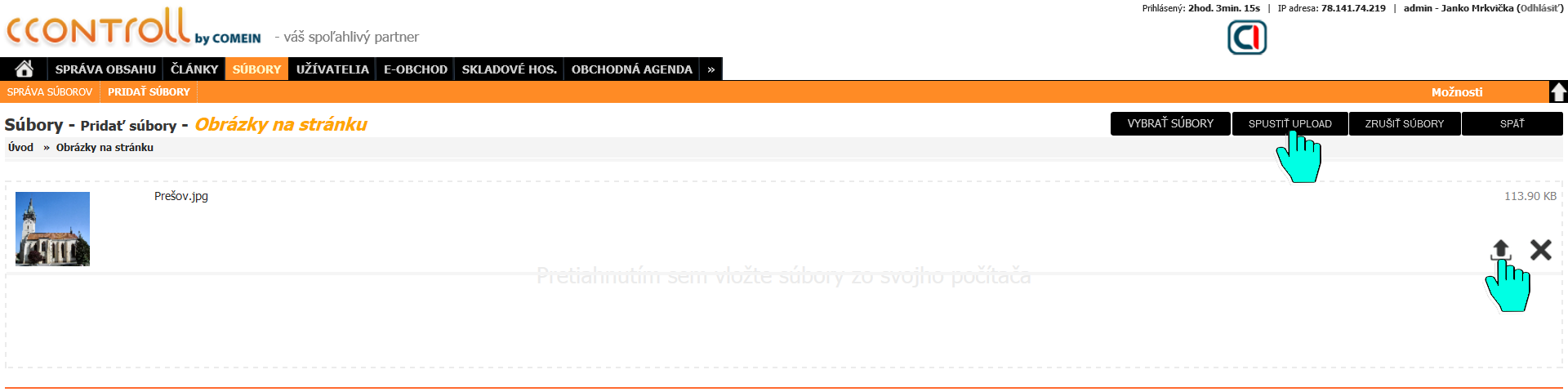 Pre nahratie jednotlivých súborov do systému klikneme na ikonu šípky smerujúcej nahor, alebo pre hromadné nahratie všetkých súborov zvolíme možnosť
