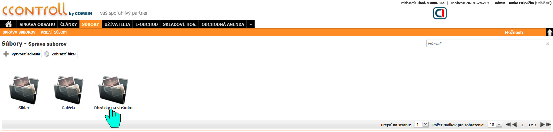 Zvolíme si adresár, do ktorého chceme súbory nahrať.