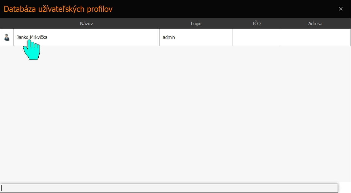 Klikneme na ikonu užívateľa, aby sme zobrazili databázu všetkých užívateľov.